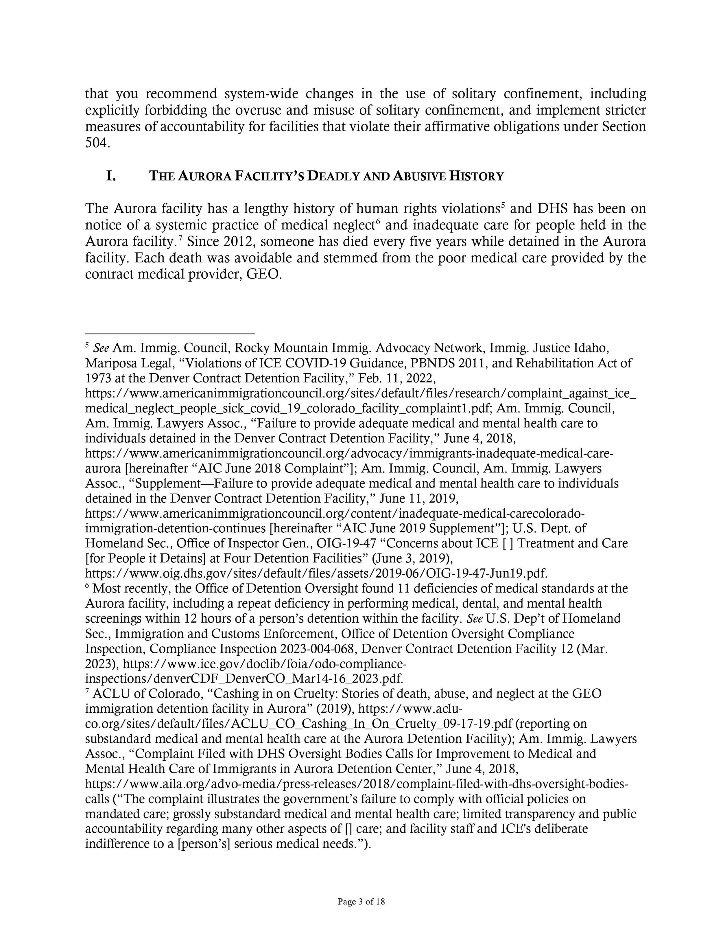 Complaint Seeks Investigation of Misuse and Overuse of Solitary Confinement at the Aurora ICE Contract Detention Facility